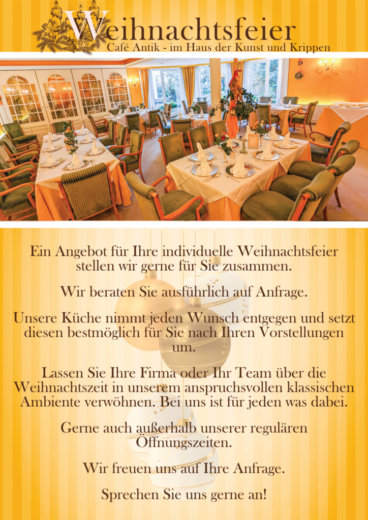 Es ist so weit, am 9.12.22 wird das Haus der Kunst und Krippen eröffnet und ob ich denn noch interessiert wäre an dem Café.